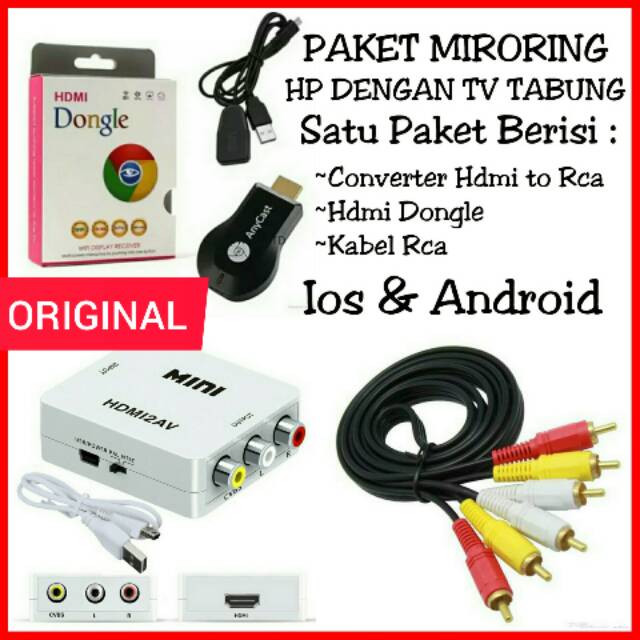 Paket Hdmi Hp Dengan Tv Tabung Anycast Hdmi Dongle Wifi Hdmi Dongel Anycash Hdmi To Av Rca Kabel Rca Shopee Indonesia