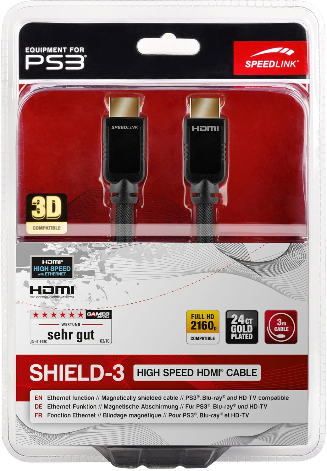 Speedlink Shield 3 Hdmi Kabel Fur Playstation Ps3 Ps4 Unterstutzt 4k Auflosung In 3d 60 Fps 2160p Hdmi 2 0 Ethernet 3m Amazon De Games