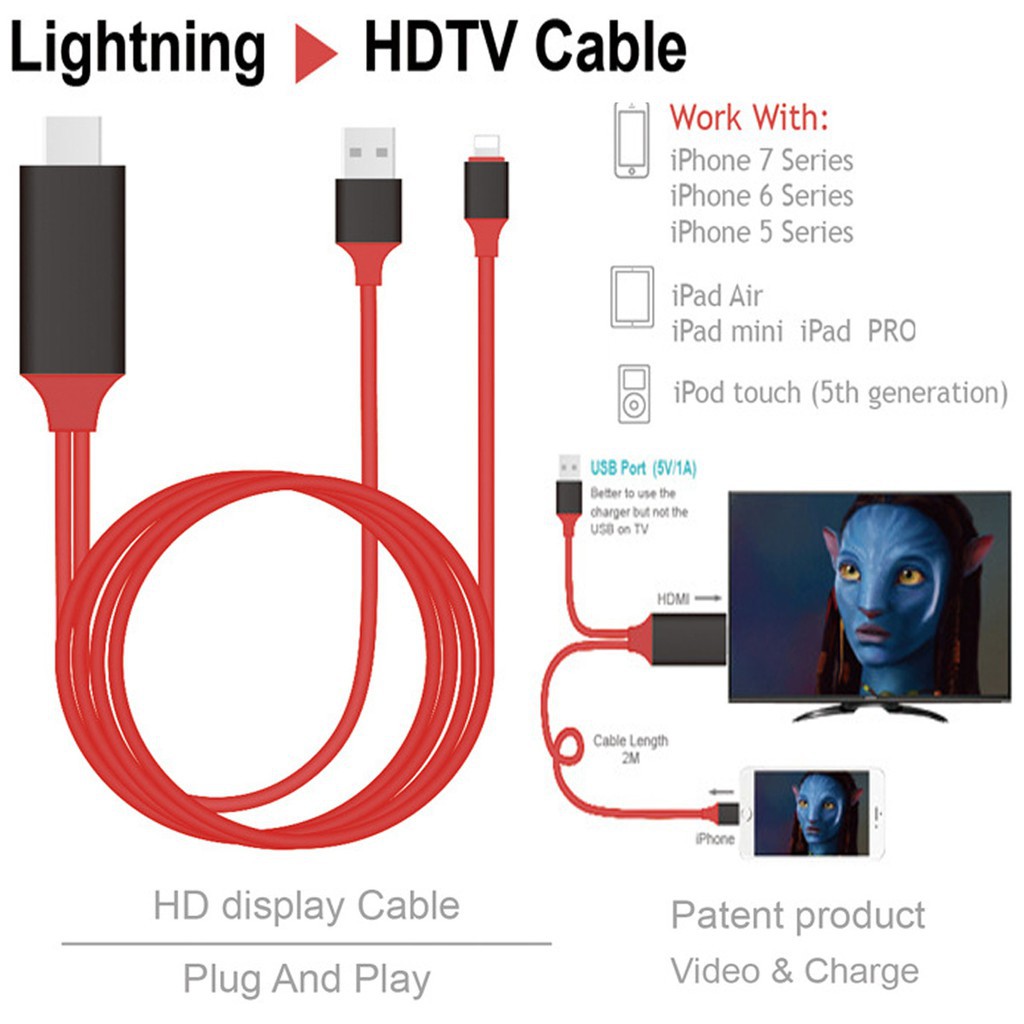 2m 8pin Lightning To Hdmi Hdtv Av Cable Adapter For Ipad Iphone 5 6 6s 7 7plus 8 X Buy At A Low Prices On Joom E Commerce Platform