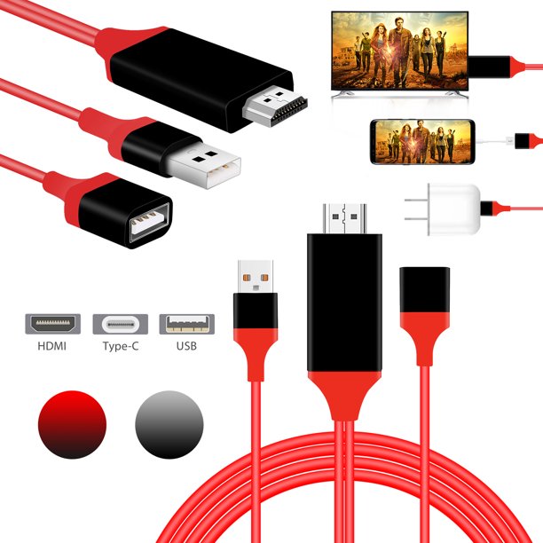 Phone To Hdmi Tv Cable Support Android Iphone Samsung To 1080p Hdtv Cord Mirror Mobile Phone Screen To Tv Hdtv Projector 3 In 1 Usb Female To Hdmi Cable Red Walmart Com Walmart Com