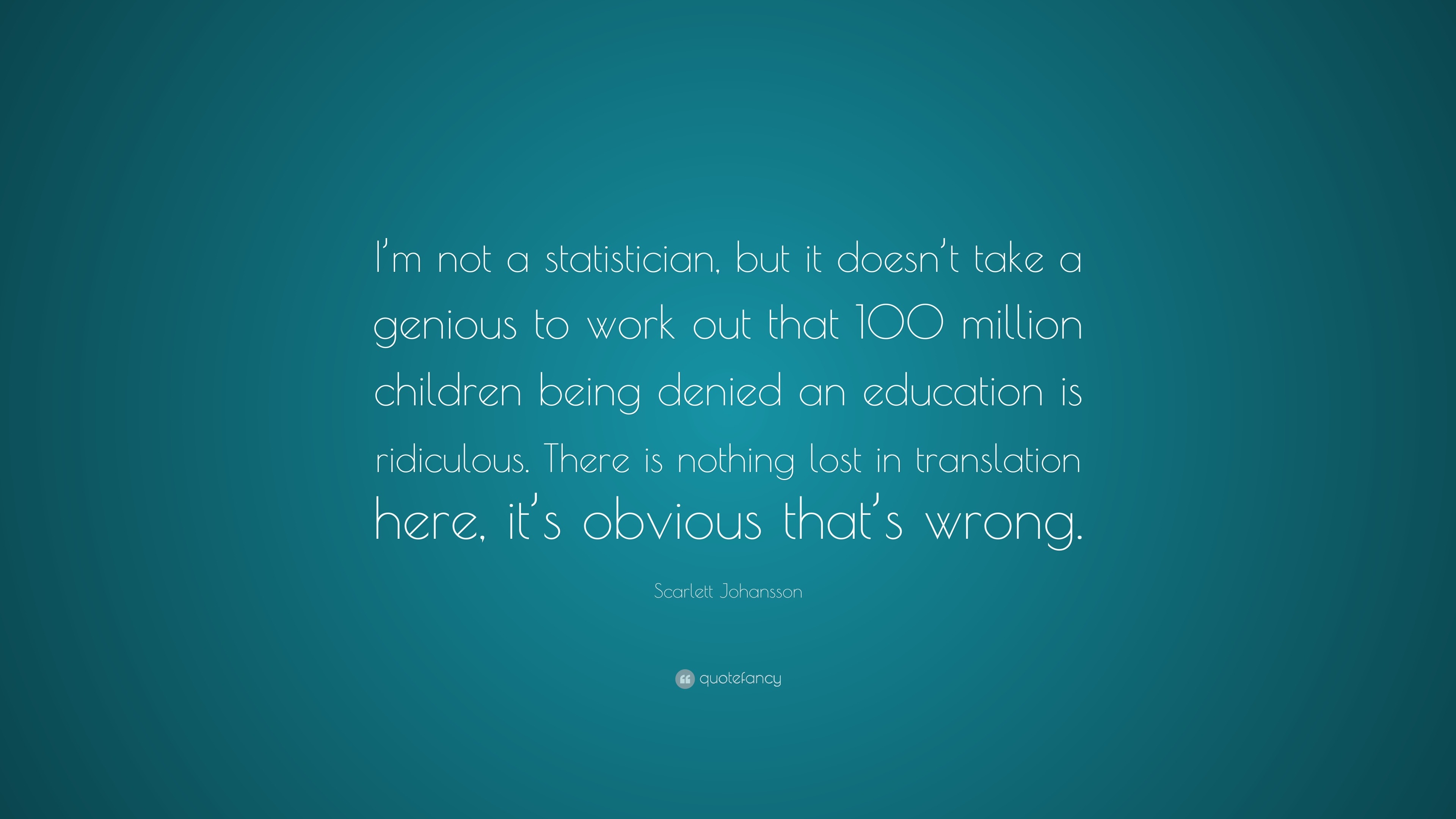 I M Not A Statistician But It Doesn T Take A Genious To Work Out That 100 Million Children Being Denied An Education Is Ridiculous There Is Nothing Lost In Translation Here It S Obvious