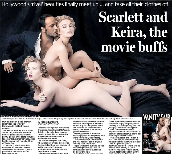 Nude keira knightley and scarlett johansson with tom ford photographed by annie leibovitz annie leibovitz photographs an undressed scarlett johansson and keira knightley with tom ford for the. Scarlett johansson mixed monochrome textures for her red carpet appearance at elles women in hollywood event. Her tom ford dress features a velvet halterneck bustier over a fitted asymmetrical.